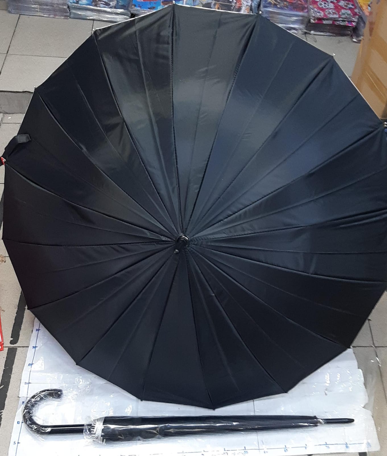 paraguas negro con 16 varillas reforzado