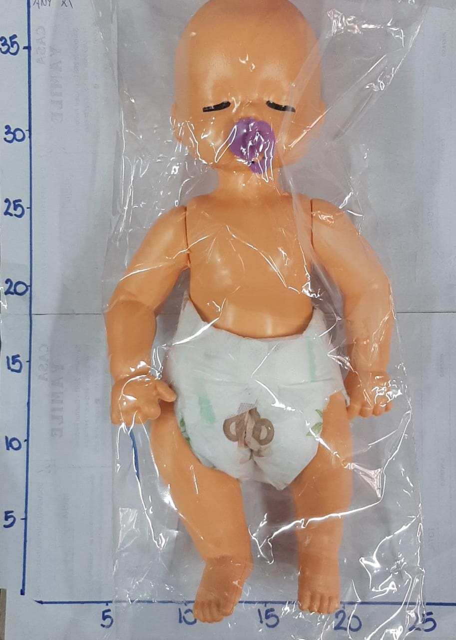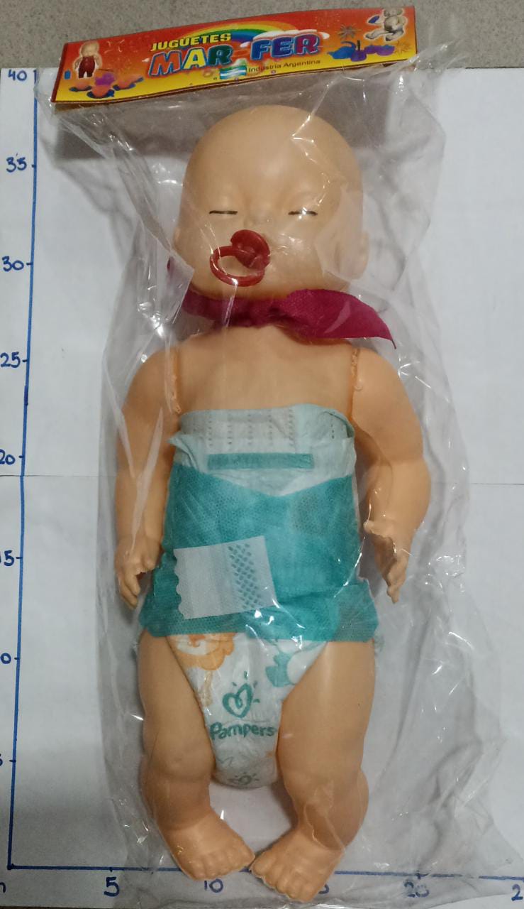 bebe en bolsa con accesorios