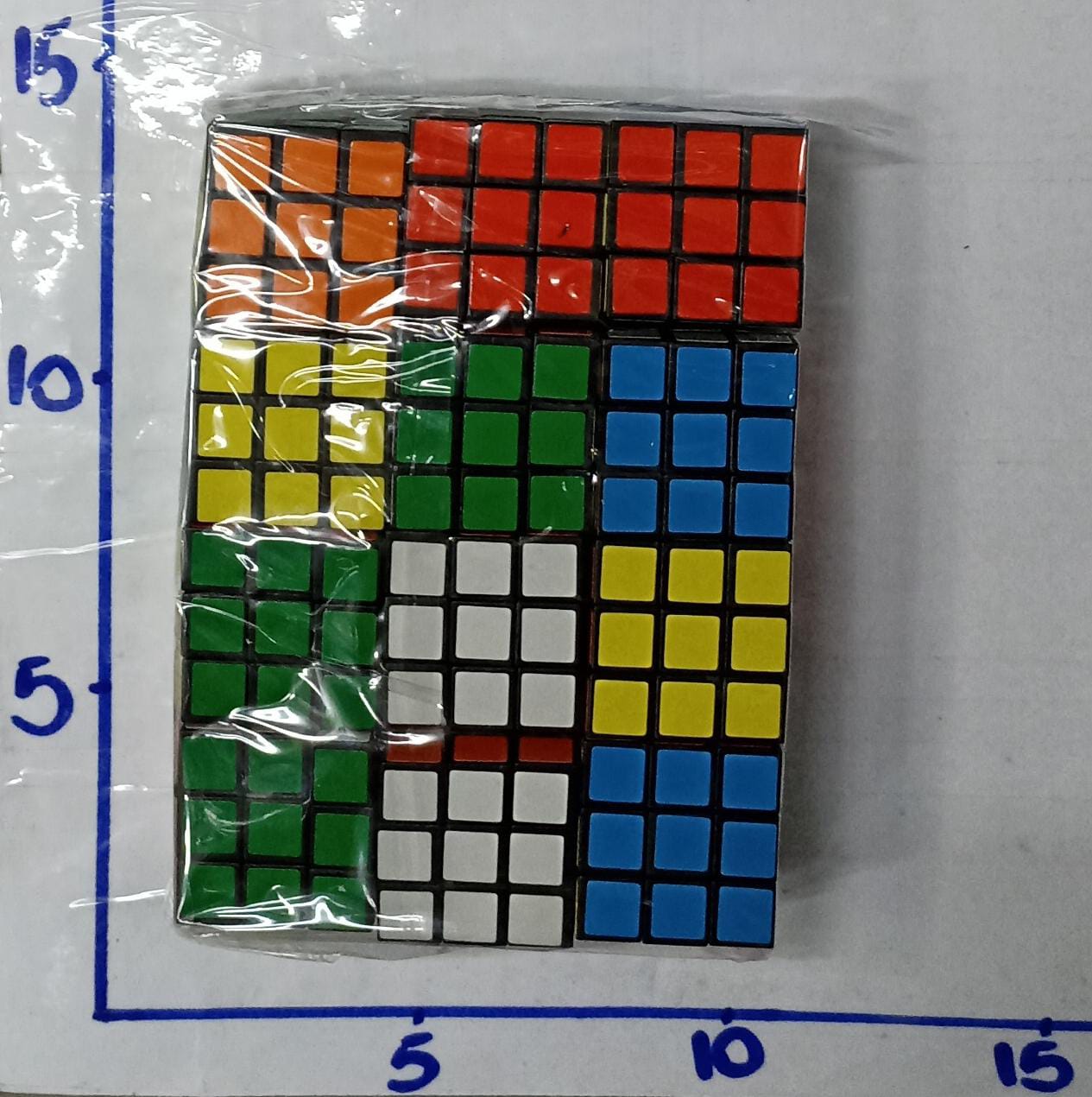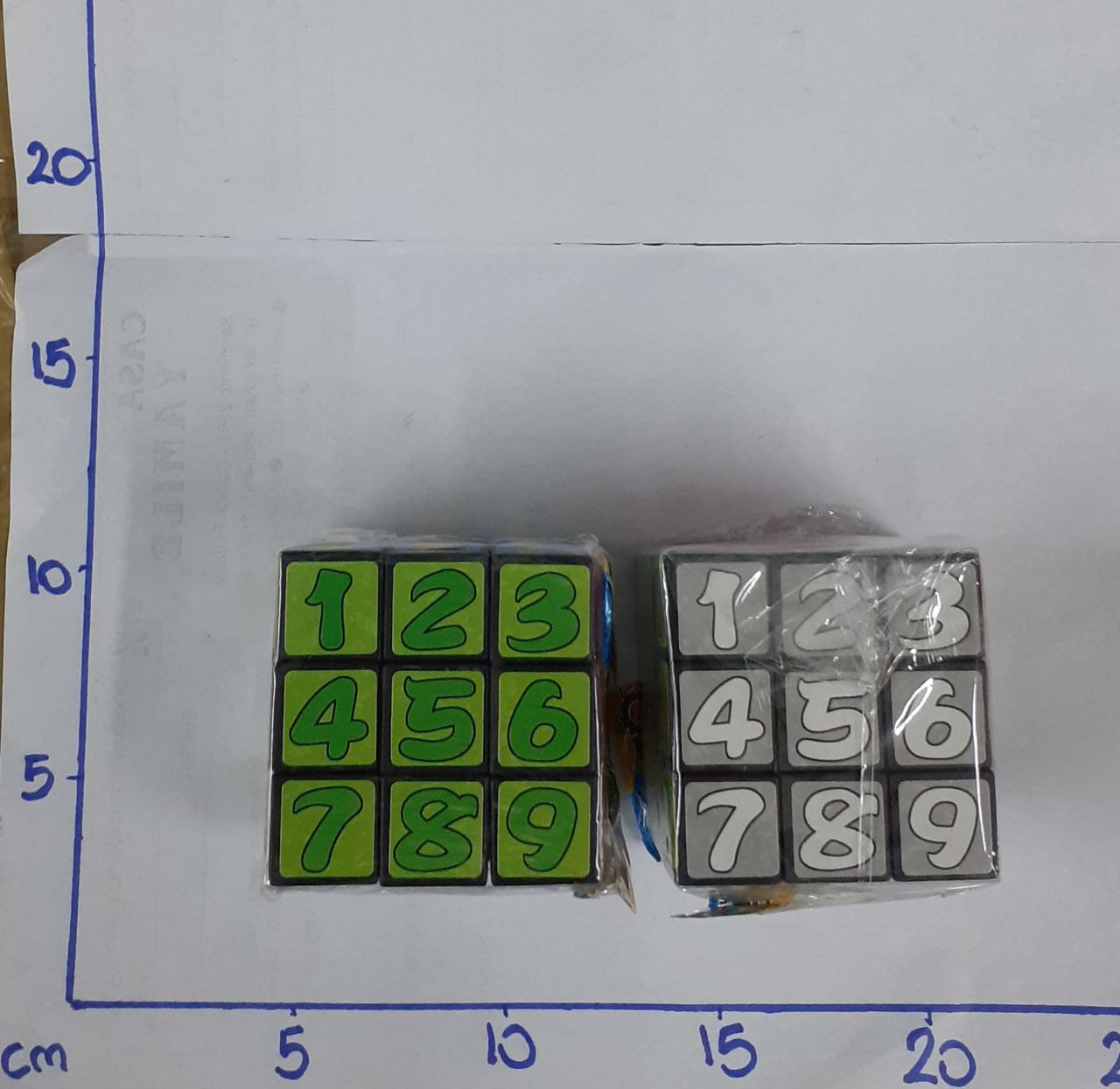 cubo magico con numeros y colores en bolsa