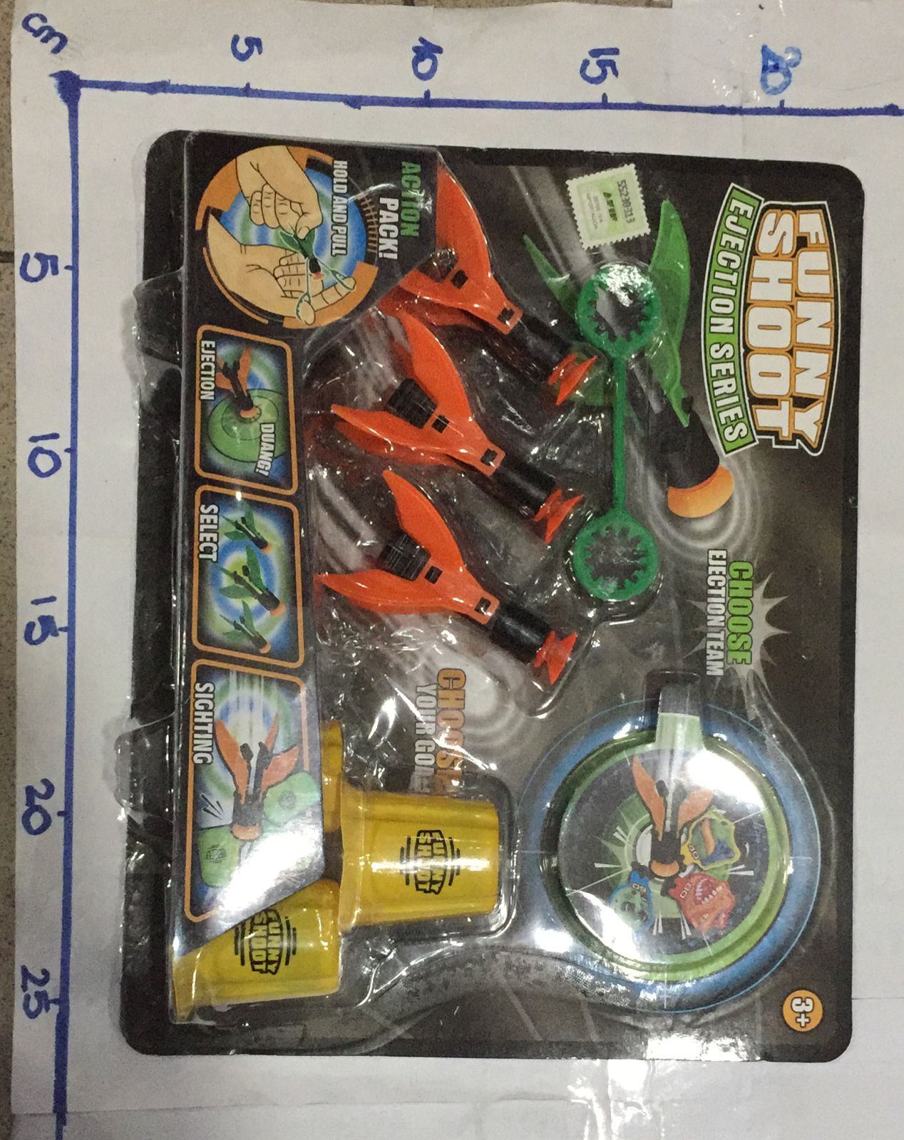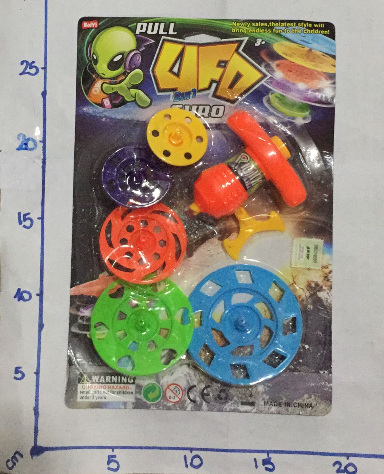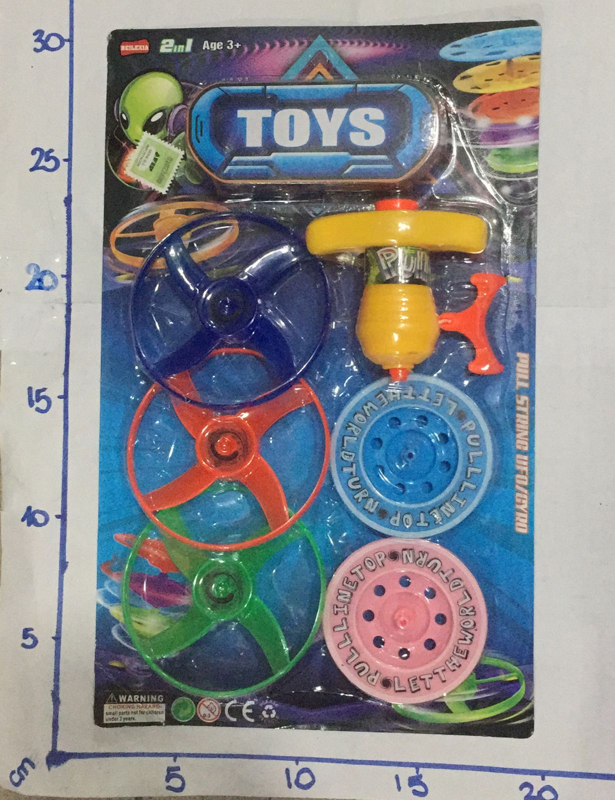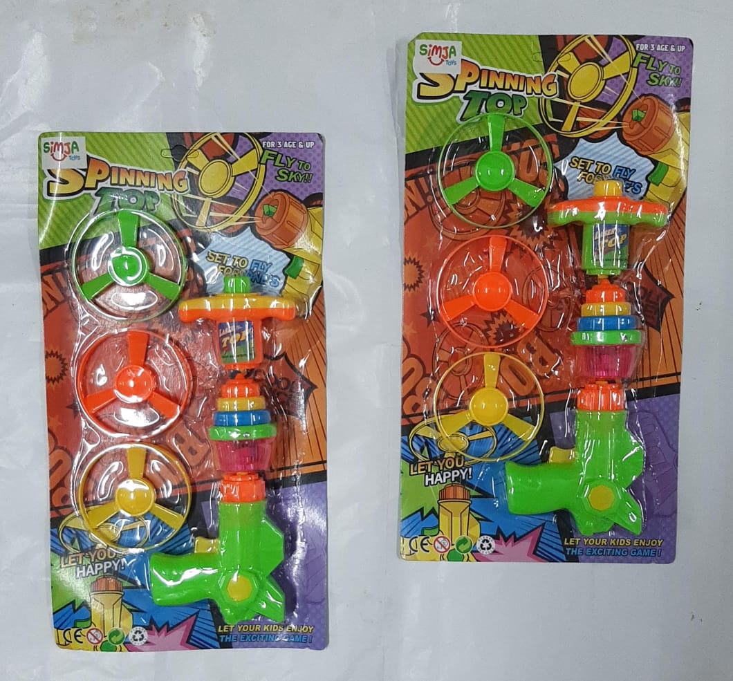 trompo en blister pistola lanza discos